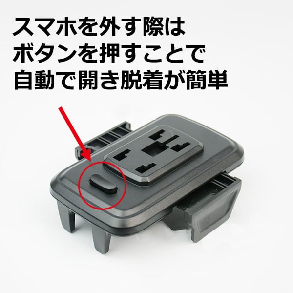 ・スマホホルダーは背面のボタンをワンタッチするだけで取り外しできる優れもの