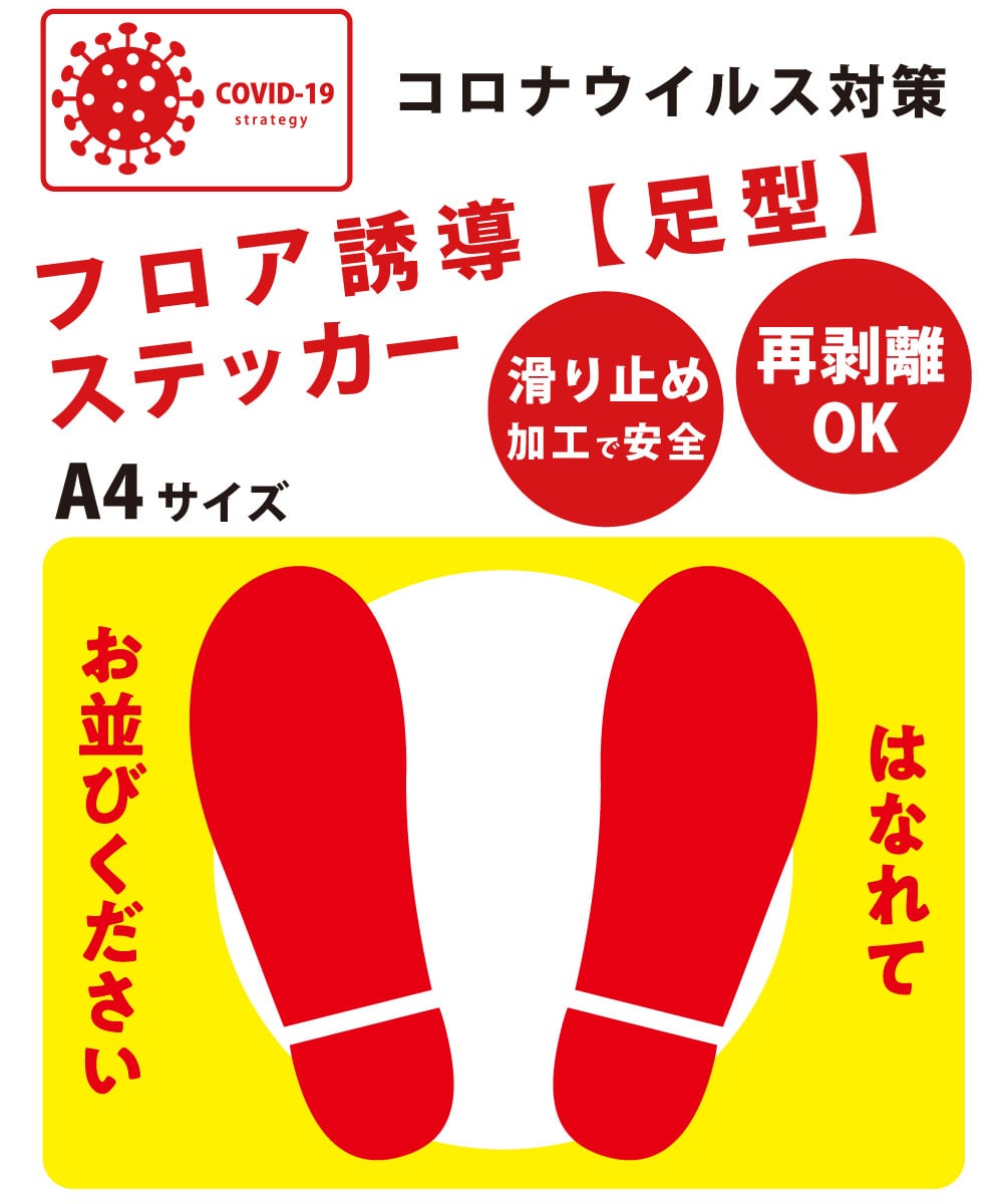 ソーシャルディスタンス ステッカー 足跡 A4サイズ 3枚入り 床面用<br>ソーシャルディスタンス 感染予防 コロナ対策 注意喚起 予防グッズ アイテム 会社 スーパー 飲食店 レジ誘導 ステッカー シール 床 エンボス加工
