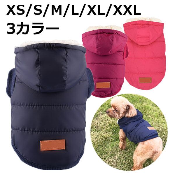 犬服 フード 付 ダウン ジャケット 裏起毛 裏 ボア ペット服 散歩 上着 ジャンパー コート アウター