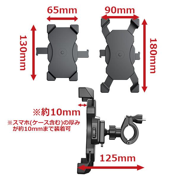 ・クロスバイク、ロードバイク、マウンテンバイクやBMX、自転車やバイクのハンドルバーにスマートフォンをマウントして使用可能!