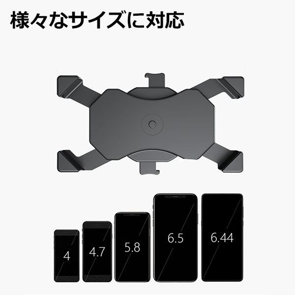 ・スマホを置くことで中心のボタンが押されると自動でホルダーがスマホをロック!